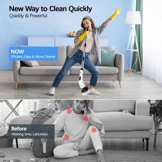 Electric Spin Scrubber - Cordless Cleaning Brush with 8 Heads & Long Handle Power Shower Scrubber for Bathroom Kitchen Tile Floor, White